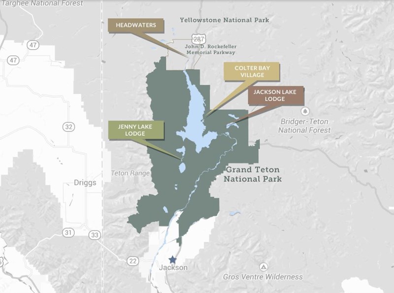 从盐湖城出发最先到达的是大提顿公园,这里的的面积相对较小,内部的住处都集中在湖区周围,所以我们准备在一个地方住两晚,最后定在了Colter Bay Village 的小木屋, 需要注意的是大提顿所有的住处都是一个公司的,共用一个网站,而他们的确认邮件里却没有写明你订的到底是哪个酒店,所以如果提前一年预定,千万不要到时候取错了地方。(我提前一周订还是忘了。。。)